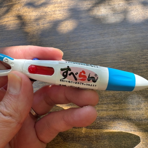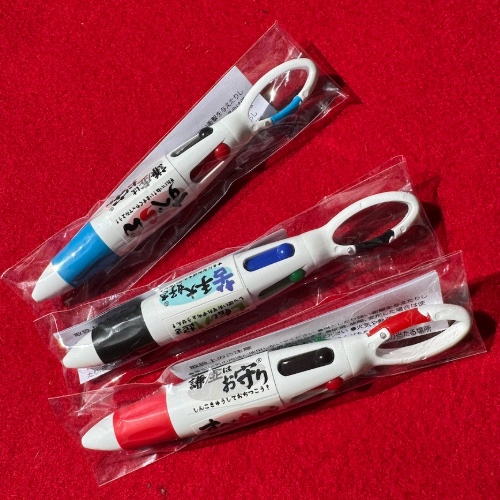 カラビナ付きで、キーホルダーのように使えるので、どこでも持ち運びできます!すべらんボールペン🖊️を持ち歩いて笑顔でいきましょう!